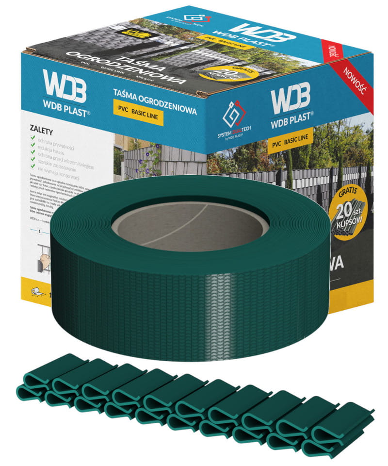 Nowoczesna taśma ogrodzeniowa marki WDB PLAST to innowacyjne rozwiązanie, które pozwoli zaprojektować nowoczesne przęsło ogrodzeniowe. Taśma została wykonana z wytrzymałego materiału PVC z stabilizatorem UV, który zapobiega odbarwianiu taśmy pod wpływem promieni słonecznych.